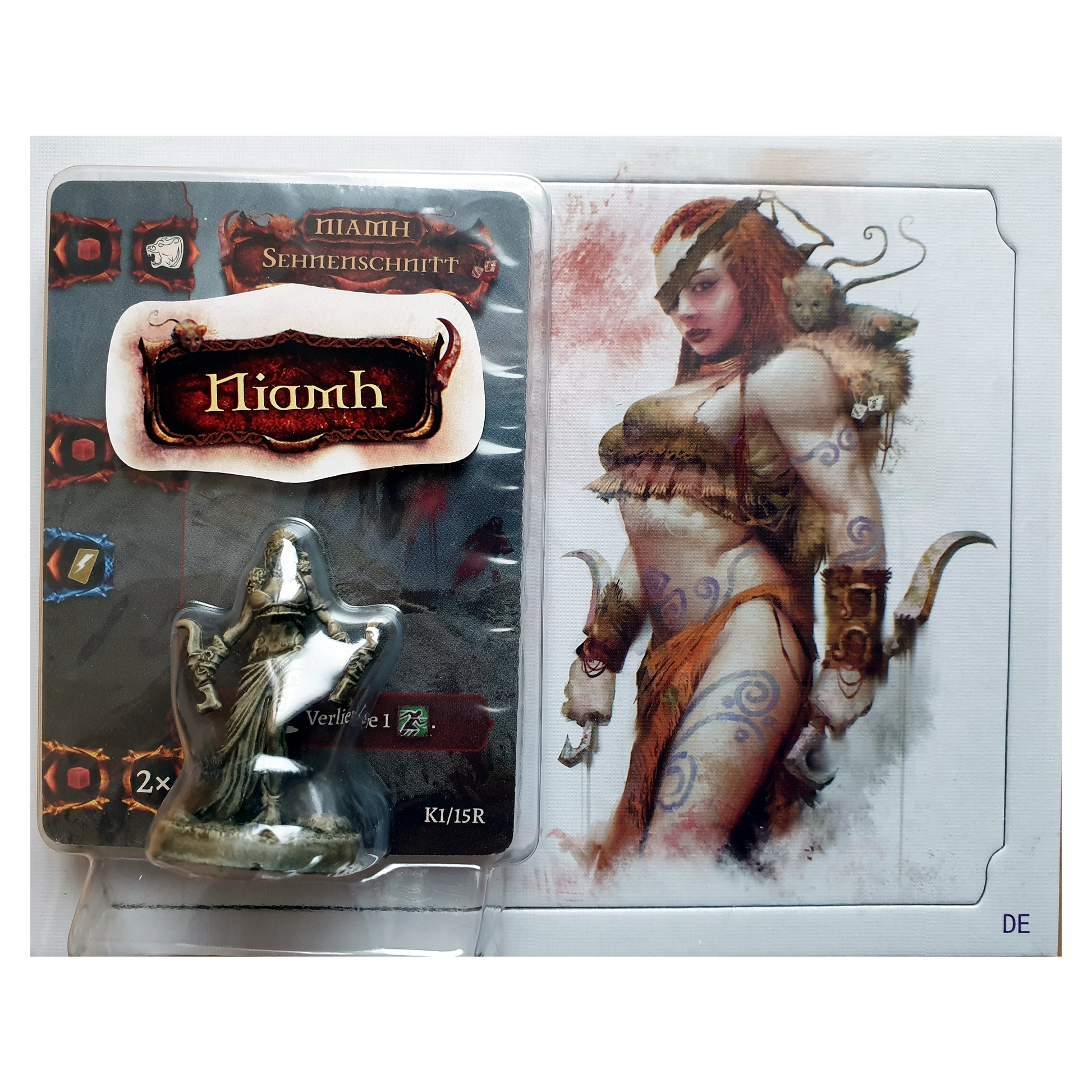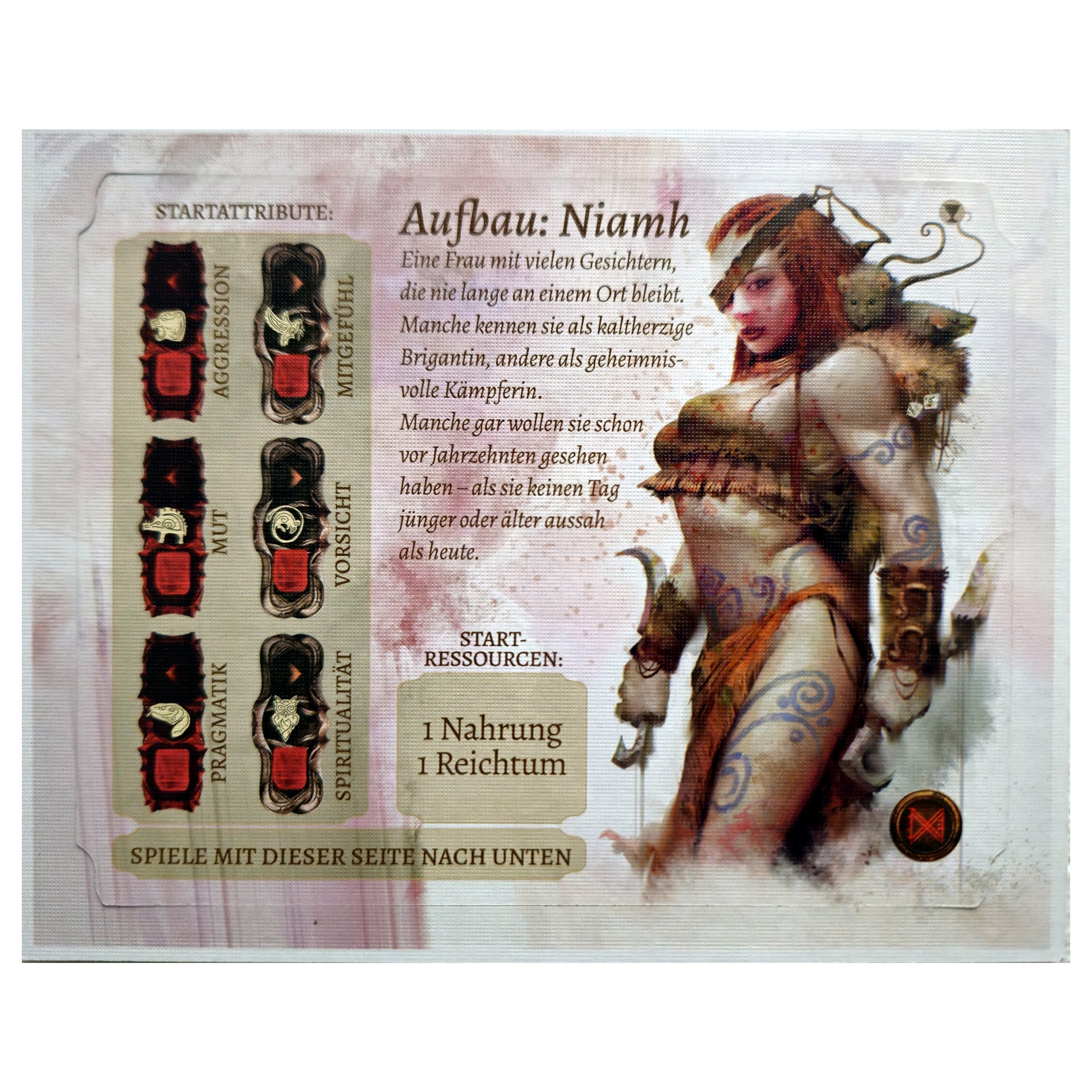 Niamh ist ein fünfter Charakter, der in allen drei Kampagnen auf Avalon verwendet werden kann und die Basis-Karten sowie das Tableau einer beliebigen Farbe verwenden kann.
